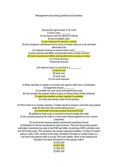 Title: - Management Accounting Questions And Answers